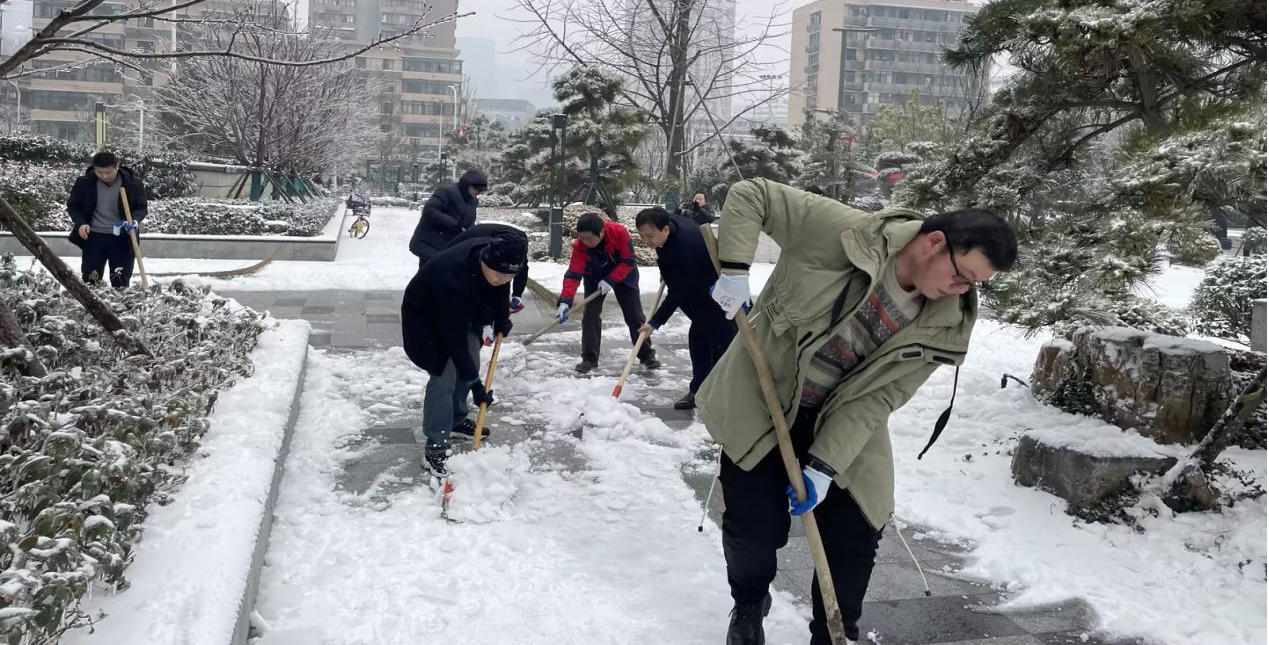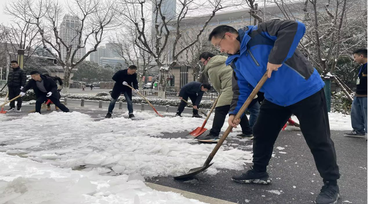 面對這場來勢洶洶的冰雪災害,飯店黨委高度重視、認真組織,提前準備應急方案,多舉措筑防線、御寒潮,對洪山大廈四周影響行人通行安全的冰雪進行防護處理、對管網等設施設備進行隱患排查、防凍處理,督促預先做好食材采購和儲備,確保大廈物業(yè)正常運營。