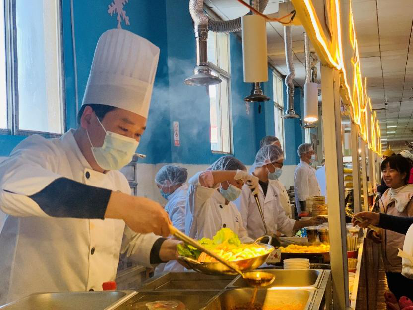伴隨著新年鐘聲的敲響,滑雪場迎來了第一縷朝陽。游客餐廳的員工們站好崗守好責,用紅色的燈籠、春聯(lián)、福字營造濃厚的春節(jié)氛圍,用有溫度的禮儀接待引導,用餐單設計和創(chuàng)意菜品滿足需求,為來自五湖四海的游客提供熱氣騰騰的年夜飯、中西式簡餐、暖心飲料和優(yōu)質(zhì)的便利超市及酒店服務,讓游客們在歡慶春節(jié)的同時,品嘗獨特的冬日美味,感受溫暖和幸福。