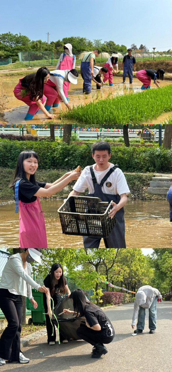此次活動(dòng)有水稻種植、渾水摸魚(yú)、綠色環(huán)保三項(xiàng)內(nèi)容。在一塊泥濘的稻田里,大家興致勃勃輪流學(xué)習(xí)體驗(yàn)插秧勞動(dòng),雖然泥水濺滿(mǎn)了全身,但仍然齊心協(xié)力讓稻田很快插滿(mǎn)了嫩綠的秧苗;在渾濁的魚(yú)塘中,大家細(xì)心觀察魚(yú)兒的動(dòng)向,一起努力敏捷抓獲,一片歡聲笑語(yǔ)中感受到收獲的喜悅;最后,大家將活動(dòng)現(xiàn)場(chǎng)和周邊的垃圾進(jìn)行了清理,通過(guò)撿拾垃圾活動(dòng)對(duì)綠色低碳生活方式有了更深的認(rèn)識(shí)和理解。