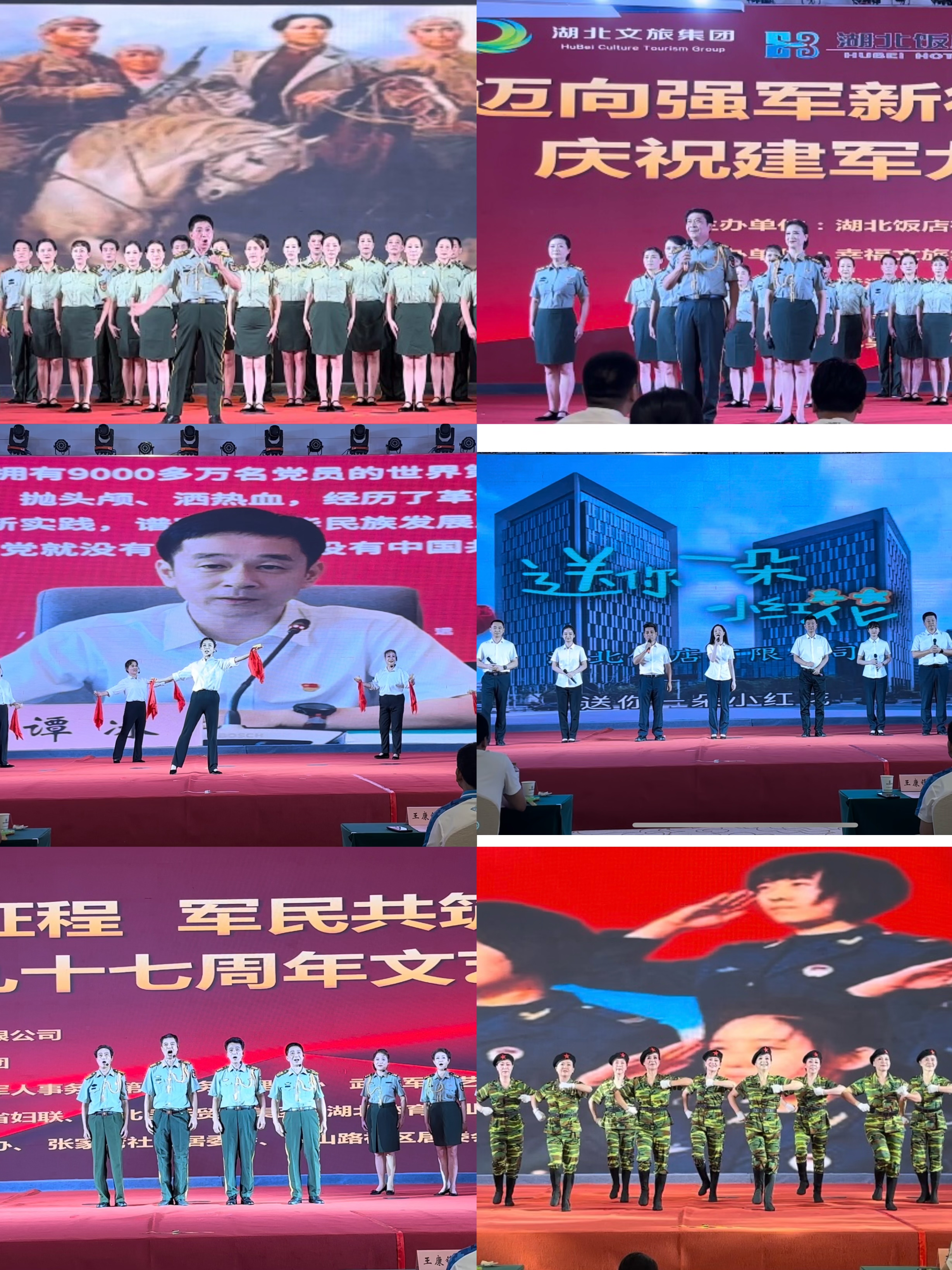 為慶祝中國人民解放軍建軍97周年,增進(jìn)軍民之間魚水情,2024年8月1日,湖北飯店聯(lián)合武漢市退役軍人事務(wù)局第八服務(wù)管理中心、武漢軍旗藝術(shù)團(tuán)在洪山大廈會(huì)議中心隆重舉辦“邁向強(qiáng)軍新征程 軍民共筑強(qiáng)軍夢”軍民聯(lián)誼文藝匯演。此次活動(dòng)邀請省國資委相關(guān)處室,入駐單位省婦聯(lián)、國貿(mào)集團(tuán)、體育集團(tuán),水果湖街道辦、張家灣社區(qū)居委會(huì)、洪山路社區(qū)居委會(huì)等單位領(lǐng)導(dǎo)及復(fù)轉(zhuǎn)軍人現(xiàn)場觀演。