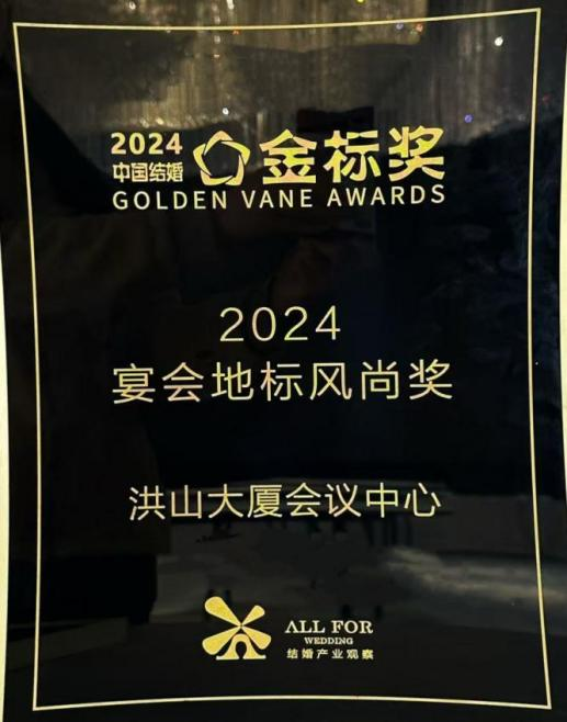 喜報|洪山大廈會議中心榮獲第九屆中國結(jié)婚『金標(biāo)獎』2024“宴會地標(biāo)風(fēng)尚獎”