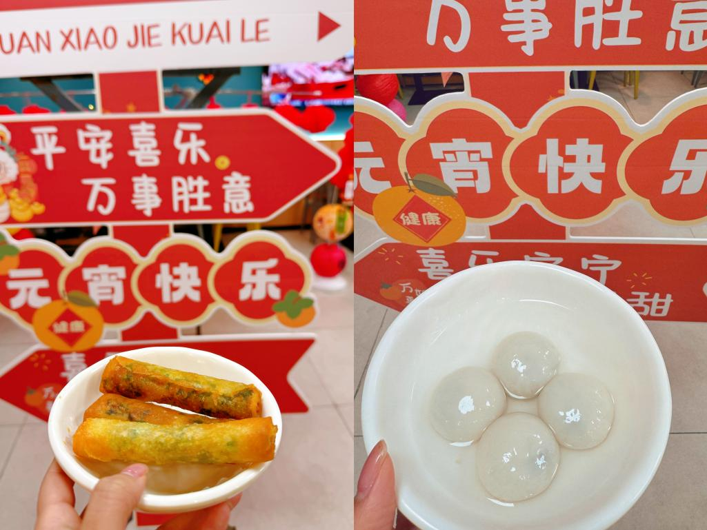 美食區(qū)更是香氣四溢,食堂特意準(zhǔn)備了春卷和湯圓供大家品嘗。金黃酥脆的春卷,皮薄餡多,咬一口滿嘴留香;軟糯香甜的湯圓,象征著團(tuán)團(tuán)圓圓,寓意美好。大家一邊品嘗著美味佳肴,一邊感受著濃厚的節(jié)日氛圍,臉上洋溢著幸福的笑容。