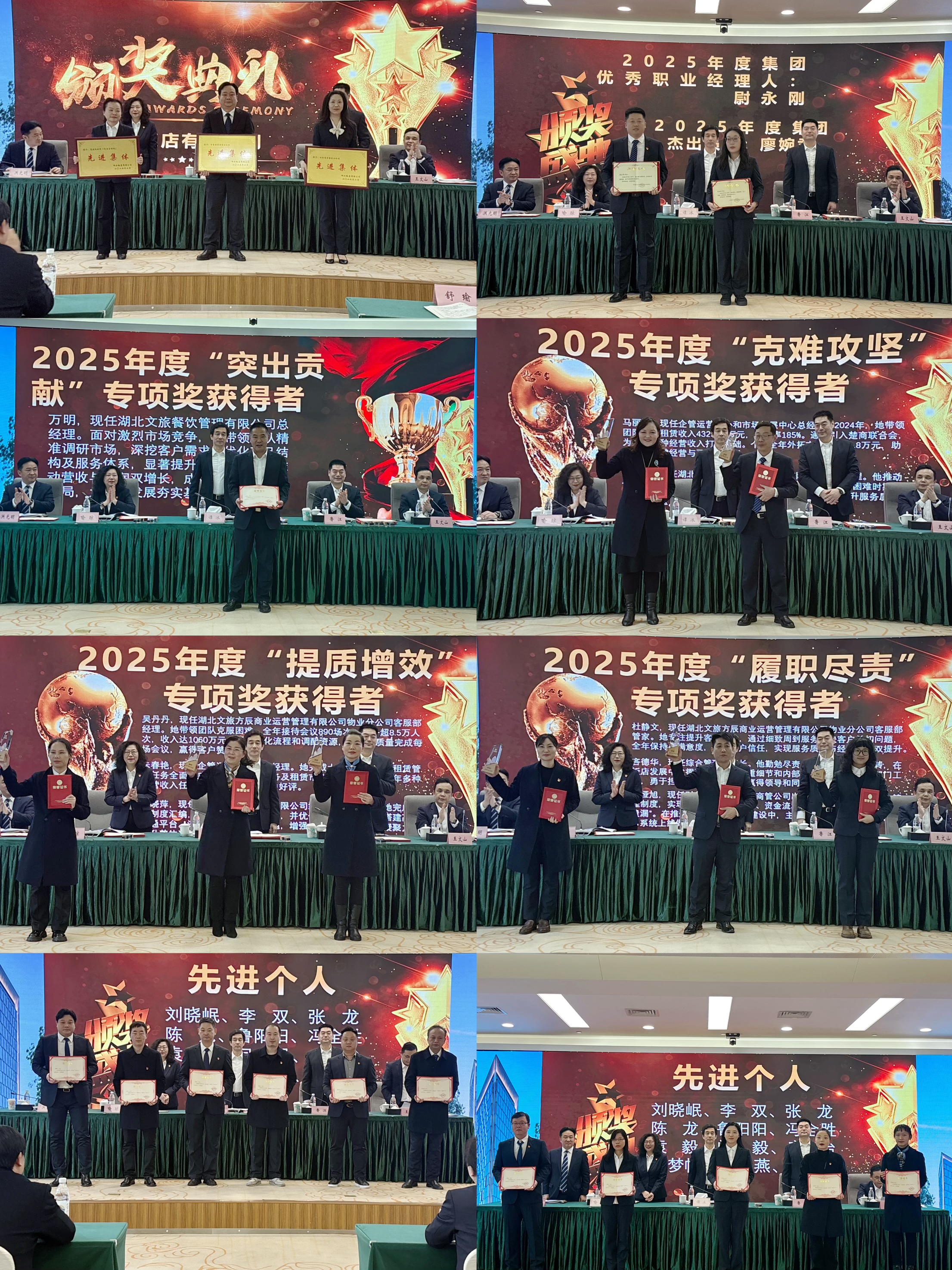 會(huì)上,對(duì)2024年度飯店先進(jìn)集體、集團(tuán)及飯店先進(jìn)個(gè)人及專項(xiàng)獎(jiǎng)獲得者進(jìn)行了表彰;黨委書(shū)記、董事長(zhǎng)譚冰代表飯店黨委與直屬支部、聯(lián)合支部簽訂了《2025年度黨的建設(shè)綜合目標(biāo)責(zé)任書(shū)》,黨委副書(shū)記、總經(jīng)理魯江代表飯店與各部室、子公司簽訂了《2025年度經(jīng)營(yíng)業(yè)績(jī)責(zé)任書(shū)》和《2025年度安全穩(wěn)定責(zé)任書(shū)》。