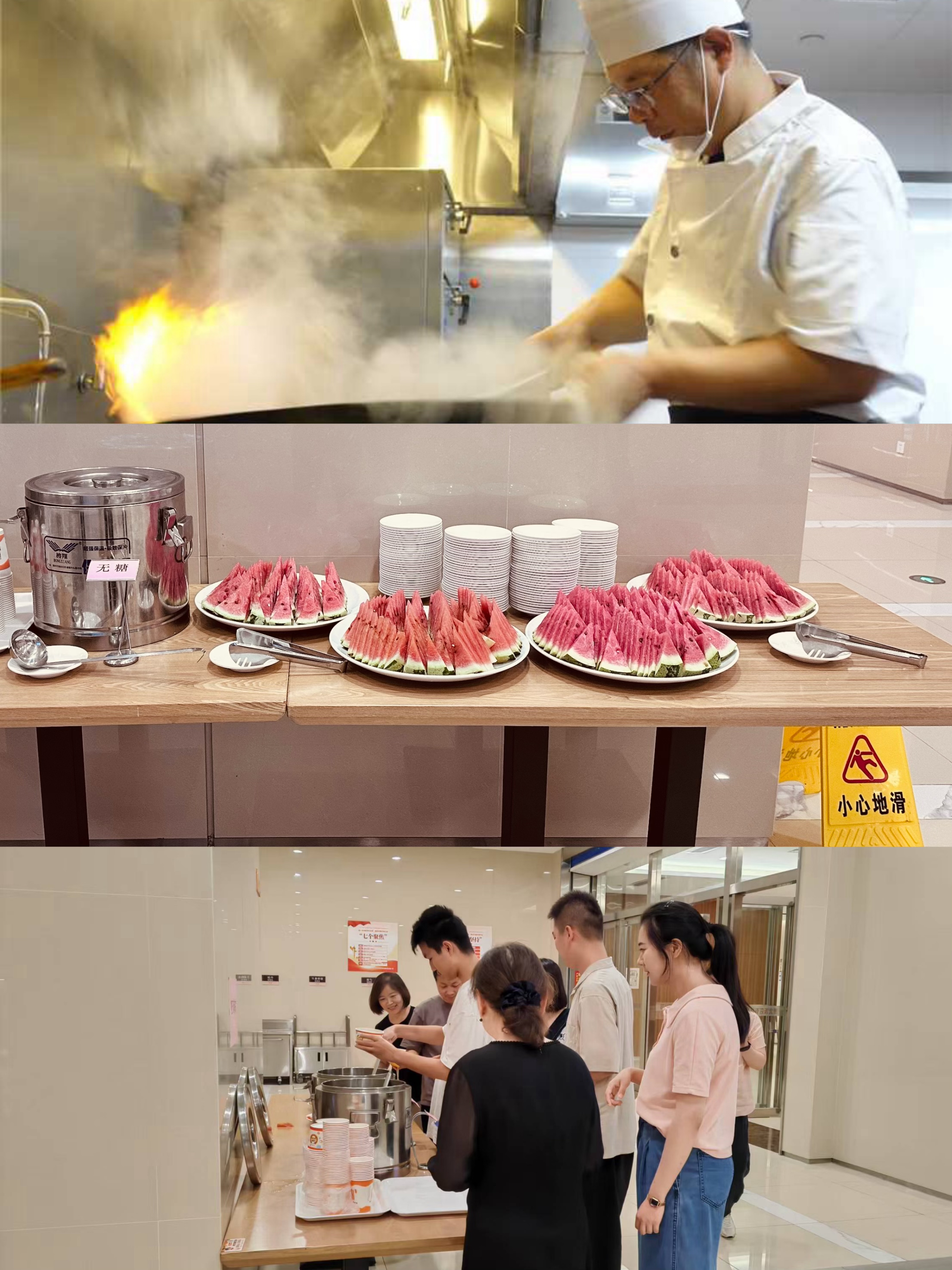 湖北文旅方辰商業(yè)運(yùn)營管理有限公司餐飲服務(wù)先鋒隊秉持“民生無小事,枝葉總關(guān)情”的服務(wù)理念,讓服務(wù)更有溫度、更具力度。盛夏時節(jié),他們不畏高溫炙烤、油煙籠罩,堅持力度不減、標(biāo)準(zhǔn)不降,精摘、細(xì)切、勤洗、煎、炸、烹、炒,保質(zhì)保量完成每道菜的制作流程,洗鍋、倒油、下主料、添配菜、調(diào)味等一連串嫻熟的動作仿佛早已練就不怕“烤”的真功,只為奉獻(xiàn)一道道美味菜肴。在暑期,他們溫馨設(shè)置了送清涼服務(wù)站,擺放了西瓜、綠豆湯等降溫食品及藥品補(bǔ)給,為入駐單位送去了絲絲涼意和暖心服務(wù),入駐單位職工們紛紛拍照并轉(zhuǎn)發(fā)朋友圈,為他們的精致服務(wù)點(diǎn)贊。